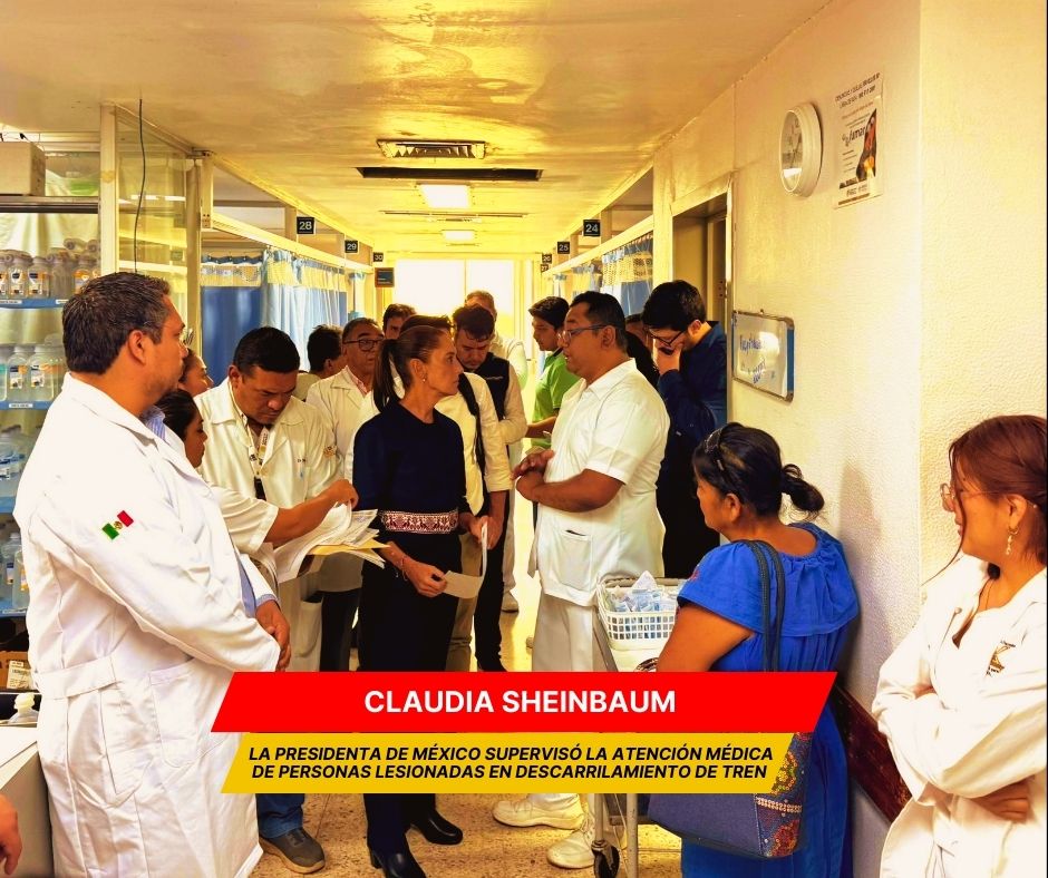 Salina Cruz, Oaxaca (Diario El Sur de Sonora).- Durante un recorrido por diversos hospitales a los que fueron trasladadas las personas lesionadas tras el descarrilamiento del Tren Interoceánico, la presidenta Claudia Sheinbaum anunció un apoyo inicial de 30 mil pesos para todas las personas heridas y los familiares de las víctimas.