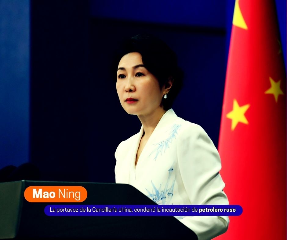 Pekín, China (Diario El Sur de Sonora).- La portavoz de la Cancillería china, Mao Ning, condenó este jueves la incautación de un petrolero de bandera rusa en el océano Atlántico por parte de EE.UU., y se opone a las sanciones unilaterales ilegales del país norteamericano, que carecen de fundamento en el derecho internacional.